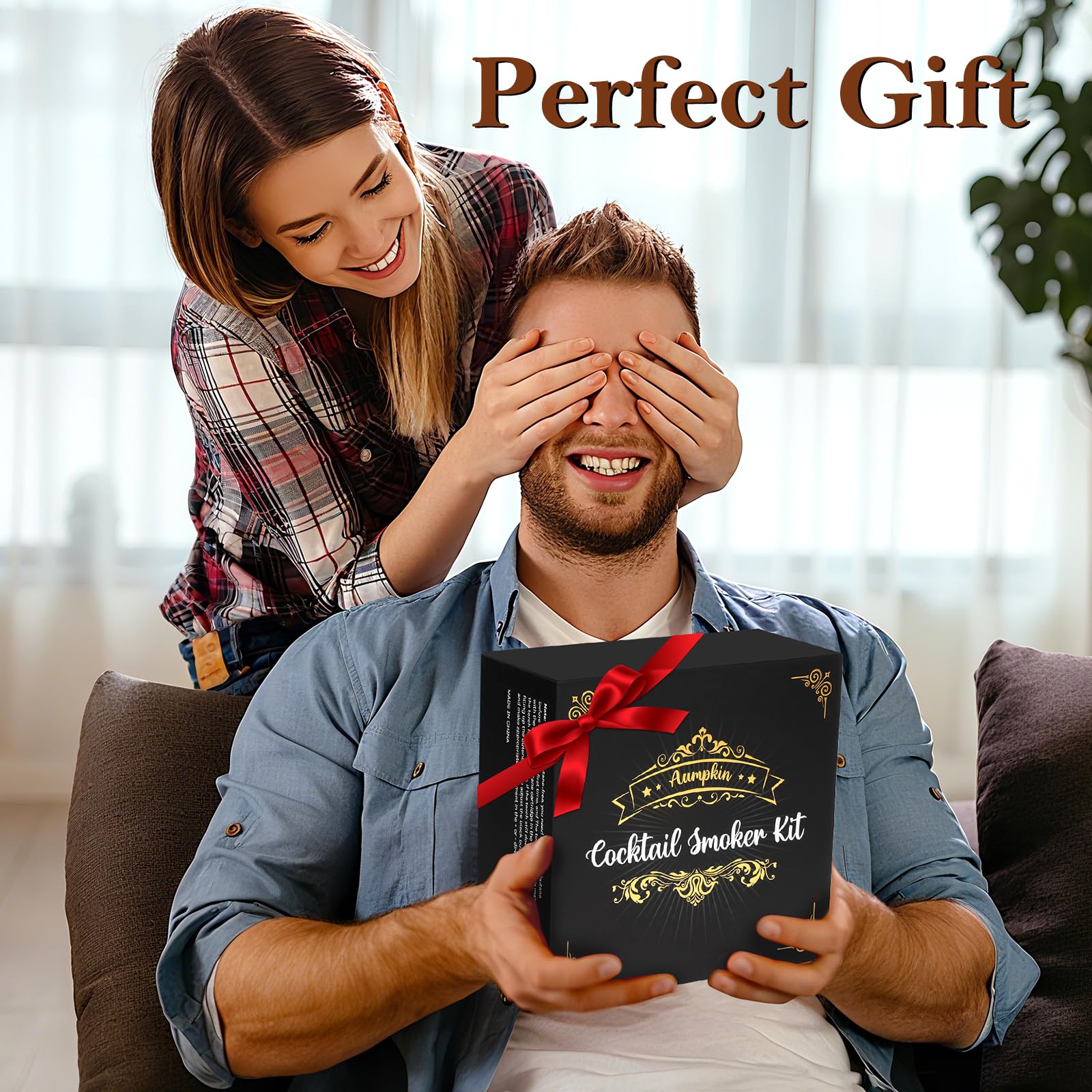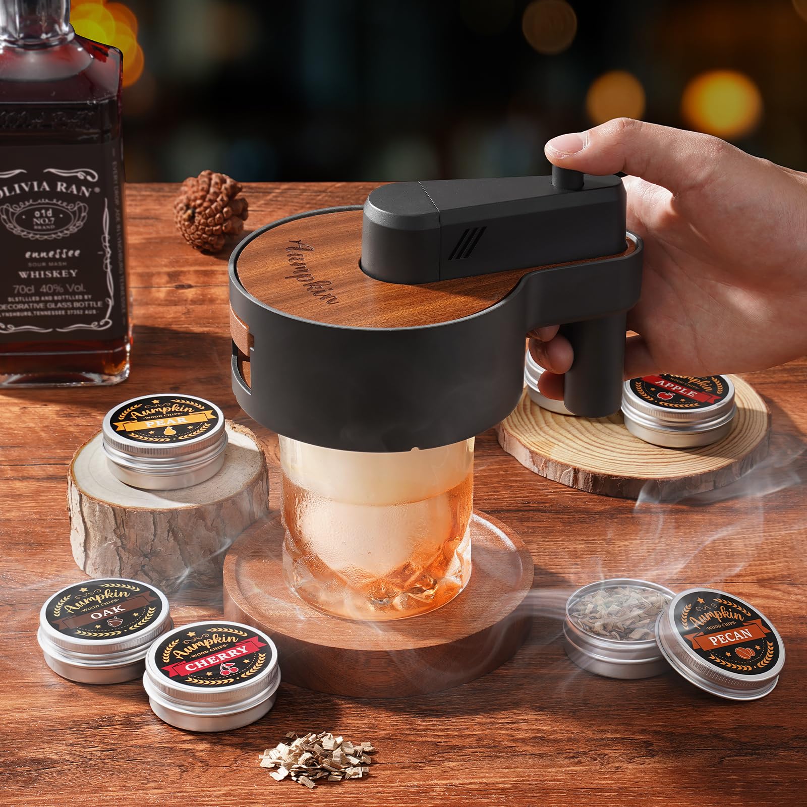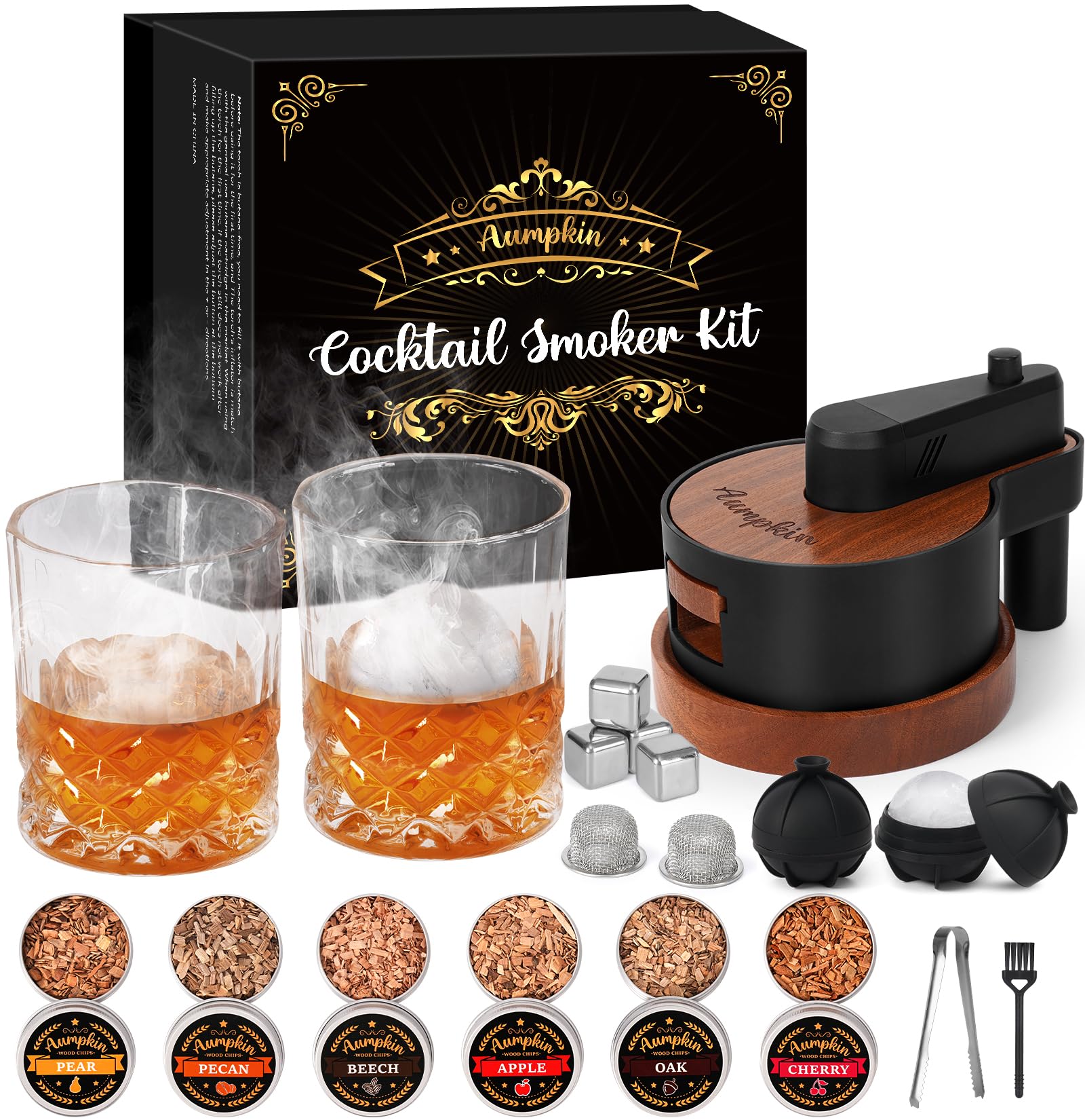 Premium Whiskey Smoker Kit with Torch, 6 Flavors Wood Chips, 2 Glasses, 2 Ice Ball Molds, Old Fashioned Drink Cocktail Smoker Kit, Birthday Bourbon Gifts for Men, Dad, Husband, Black (NO Butane)